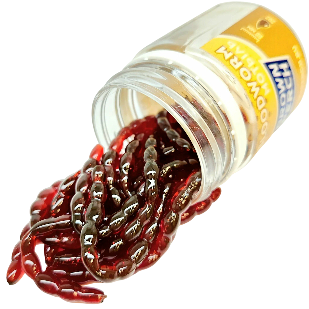 80 mm hosszú, 13 g, 14 db vörös szúnyoglárva, UV aktív, 202 Motor oil színkód.