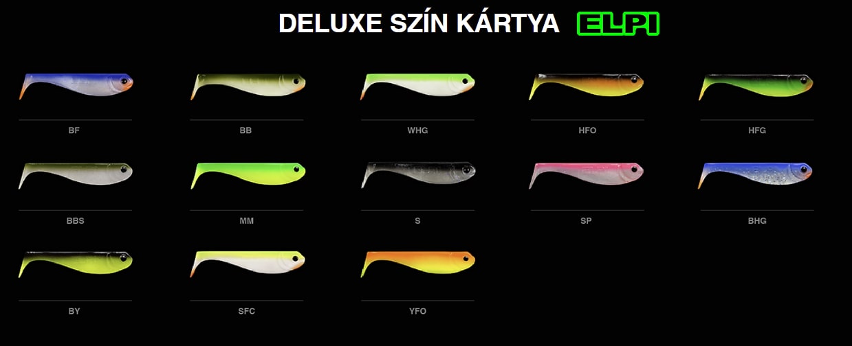 Az ELPI Swifty gumihala 9, 11 és 15 cm-es méretben készül, mi a legkisebb családtagot vettük fel az Ebihal kínálatába. Ez egy kivételesen egyenletes mozgású csalisorozat, ami 3 g felett kezd élni igazán. Farka közepes frekvenciával mozog, amely mozgás az egész testet átjárja. Ugyanakkor a test az ingához hasonló mozgást is végez, ami nagyon vonzó a ragadozók számára. Elsősorban csukára és harcsára ajánljuk. De a kapitális süllők is előszeretettel felveszik.