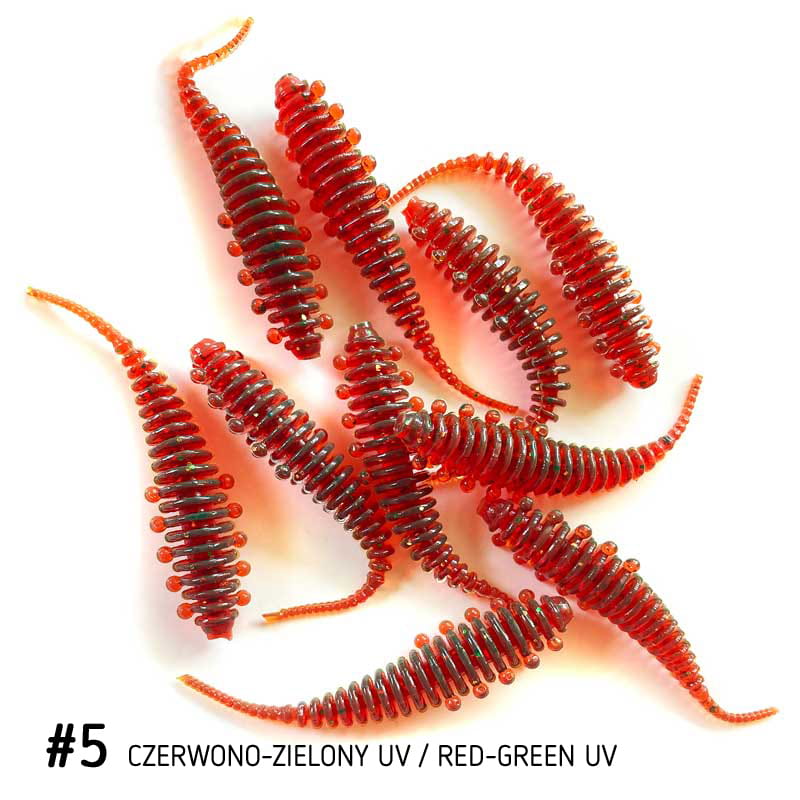 4,5 cm hosszú, 0,6 g, #5 zöld-piros Motor oil szín, floating, UV aktív, aromásított, ftalát-mentes, 10 db/csomag.